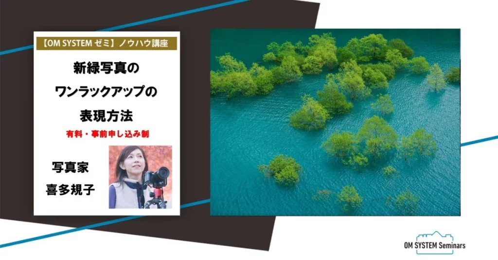 OM SYSTEMゼミのノウハウ講座(有料)で、『新緑写真のワンランクアップの表現方法』のノウハウについてお話しさせていただきました。 桜の撮影に夢中になっていると新緑の美しい時期を逃してしまう事も!新緑の萌黄色のグラデーションは講座の中でもお見せしているのですが、本当にあっという間!新緑撮影の狙いのポイントから天候によってのそれぞれの狙い方など、GWの新緑撮影にも役立つ内容となっていますので、ぜひご覧いただけると嬉しいです。 ワンコインで約1ケ月程度、何度もご覧いただけます。 投稿公開日:2025年4月29日 その他の記事を読む 前の投稿『風景写真』5‐6月号 掲載 次の投稿『エプサイトギャラリー感謝祭』に展示 おすすめ 写真家 喜多 規子 × OM SYSTEM OM-1 Mark II 公開 2024年2月2日 『フィルター撮影スーパーガイド』執筆・掲載 2024年12月20日 風景写真Award2019オンライントークイベント開催のお知らせ 2020年6月28日
