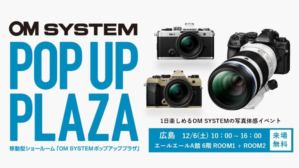12月6日(土)に開催される移動型ショールーム 「OM SYSTEM ポップアッププラザ」広島でトークライブに登壇させていただくことになりました。